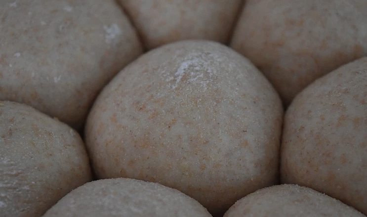 Warm the milk to room temperature and melt the butter. Mix the dry ingredients in a bowl. Activate the yeast in warm water and combine the milk, butter, and maple syrup, then add to the dry ingredients. Mix by hand until a cohesive dough forms.